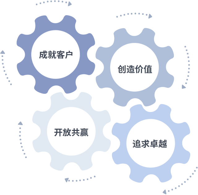 成就客户是一切决策的出发点,创造价值是衡量所有工作的标准,追求卓越是J9直营集团做事做人的态度,开放共赢是J9直营集团的格局也是最终的结果。价值观的齿轮环环相扣,推动着组织里的每个人不断向前。